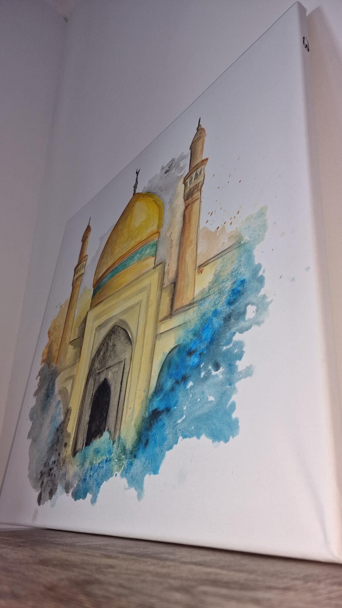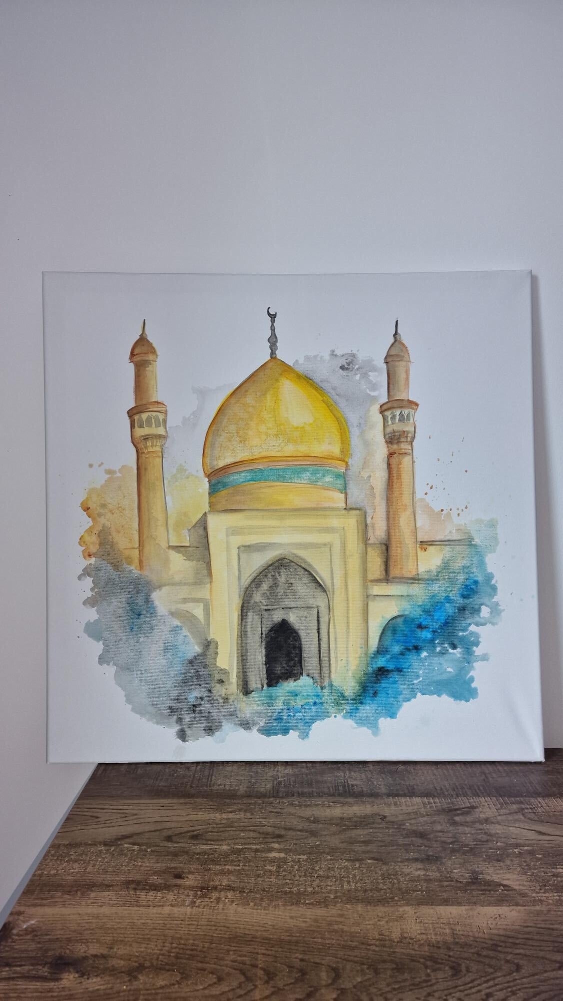 Een moderne interpretatie van de moskee die verbonden is met de rustplaats van Hz. Ali. In dit schilderij komen spiritualiteit en hedendaagse vorm samen, met gevoel en respect tot leven gebracht op het doek.